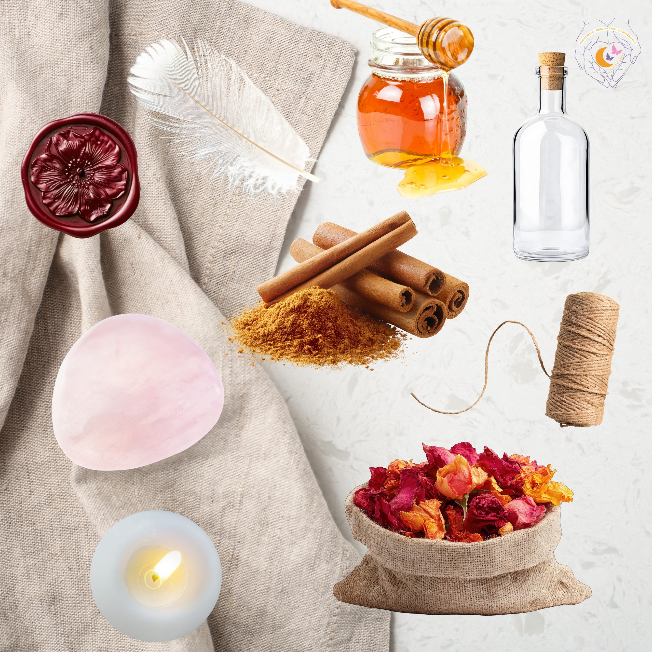 • Pétales de rose séchés : fleur de Vénus, elles incarnent l’amour universel et la beauté. Elles ouvrent le cœur.
