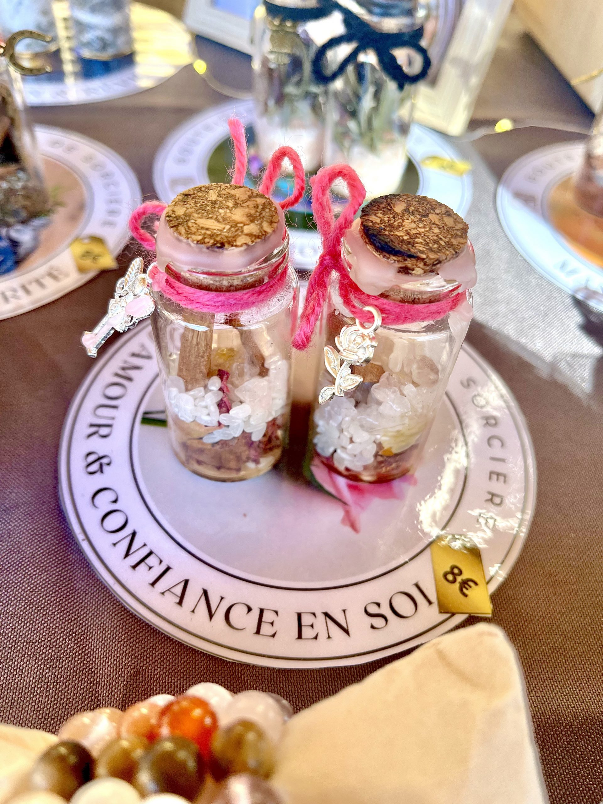Création consciente, le bocal devient ensuite un gardien de l’intention. On peut le placer sur un autel, le porter avec soi, l’enterrer, ou l’activer lors des cycles lunaires.