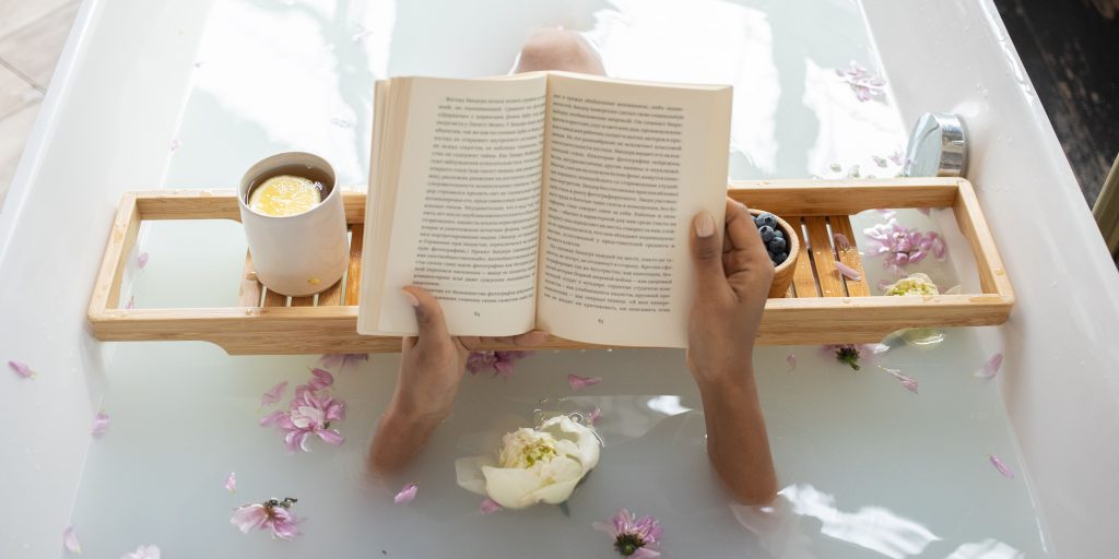 - Prépare un bain chaud ou une douche aux huiles essentielles (lavande, géranium, orange douce).